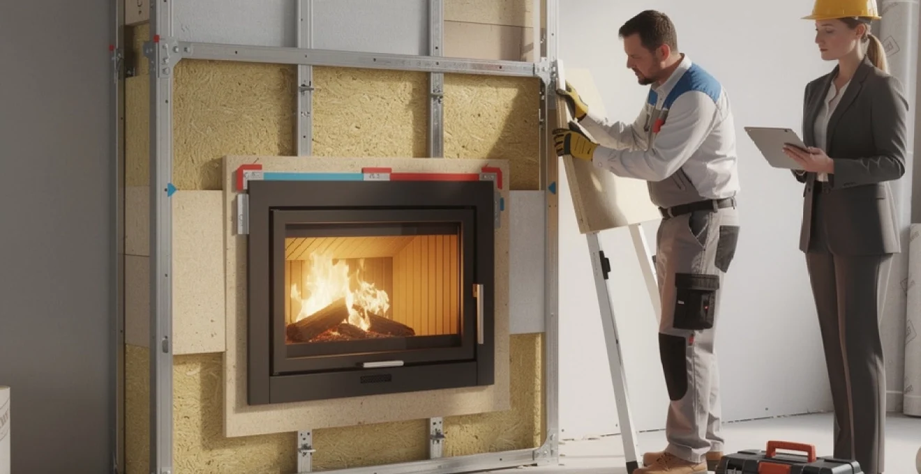 Les panneaux en silicate de calcium se fixent mécaniquement sur une ossature métallique ou directement sur le support massif (béton, brique), à l’aide de chevilles adaptées. Ils peuvent ensuite être enduits, carrelés ou peints avec des peintures haute température. Leur comportement se rapproche de celui d’une carapace protectrice autour du foyer : ils constituent la partie « bouclier » de votre isolation derrière l’insert, tandis que la laine minérale joue le rôle d’isolant thermique principal.