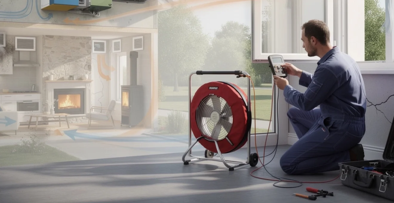 Les cheminées à foyer ouvert et certains poêles à bois non étanches constituent des points particulièrement sensibles dans une maison en dépression. En situation normale, le tirage du conduit évacue les fumées vers l’extérieur. Mais si la dépression intérieure devient trop forte (au-delà de 10 à 15 Pa), le flux peut s’inverser partiellement et provoquer des refoulements de fumées, d’odeurs de combustion ou, dans les cas extrêmes, une accumulation dangereuse de monoxyde de carbone.