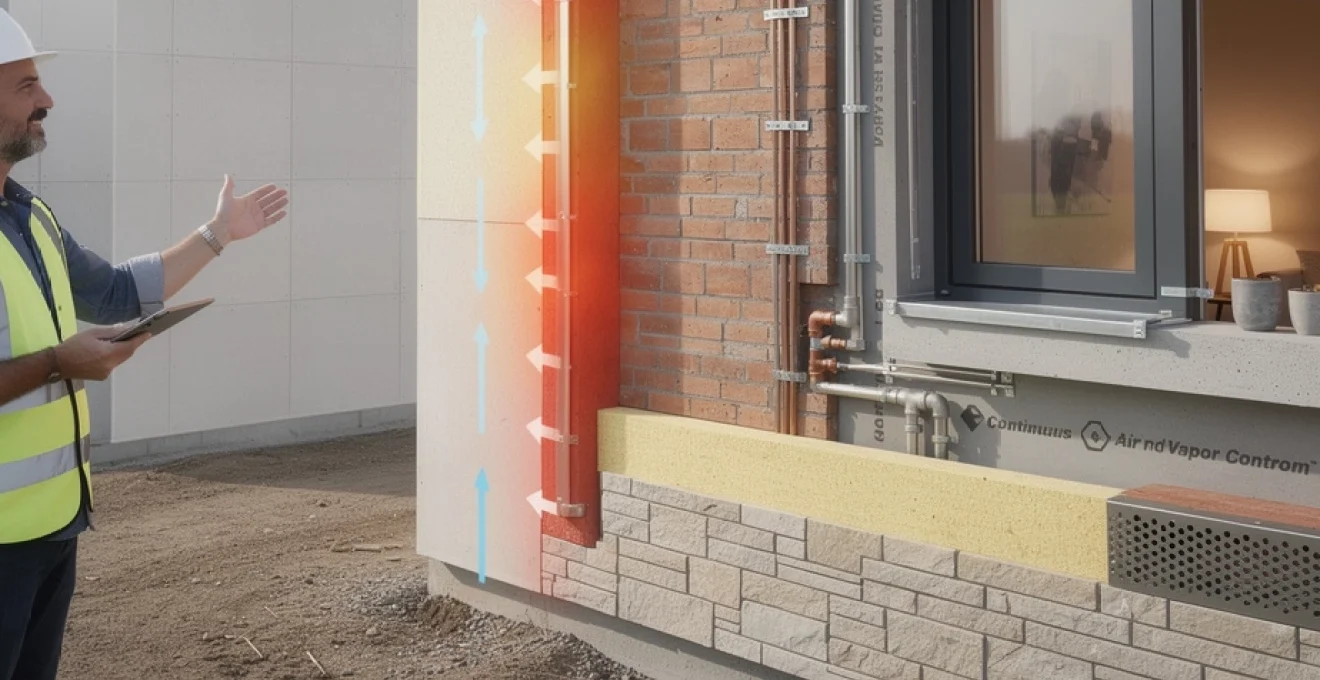 Pour les calculs réglementaires, cette contribution reste modeste par rapport à celle de la couche isolante principale. On peut l’assimiler à une fine « couche d’air » piégée, comparable à ce que l’on retrouve dans un double vitrage, mais en beaucoup moins performant. L’enjeu majeur reste donc la qualité et l’épaisseur de l’isolant fixé sur le mur porteur, ainsi que la continuité de cette isolation. En résumé, la lame d’air est un excellent allié pour la durabilité du système, mais ce n’est pas elle qui fera chuter significativement votre coefficient U.