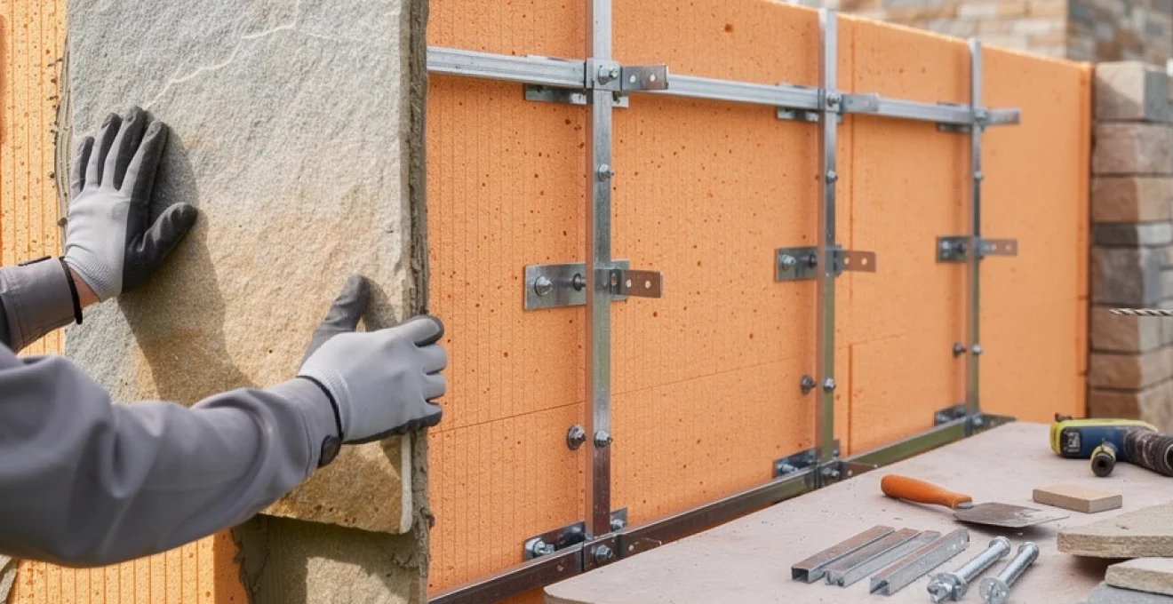Systèmes de fixation mécanique pour parement pierre sur isolant rigide